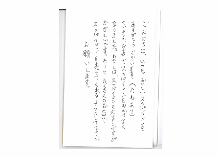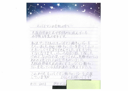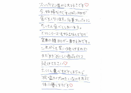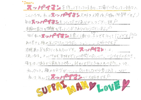 スッパイマンを作って下さっている方々へ、工場ではたらいている方々へ