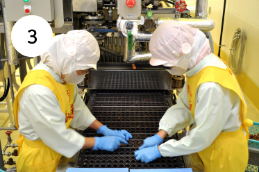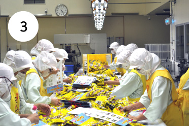 製造された梅及びキャンディーを機械で確認できないものは人の目にて確認。