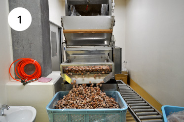 原料の梅の不純物及び塩を取り除く為、振動で落とす。