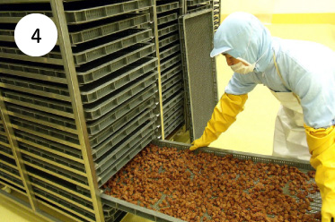 ラックに入れられた梅を乾燥機にて乾燥させるとスッパイマンのできあがり!