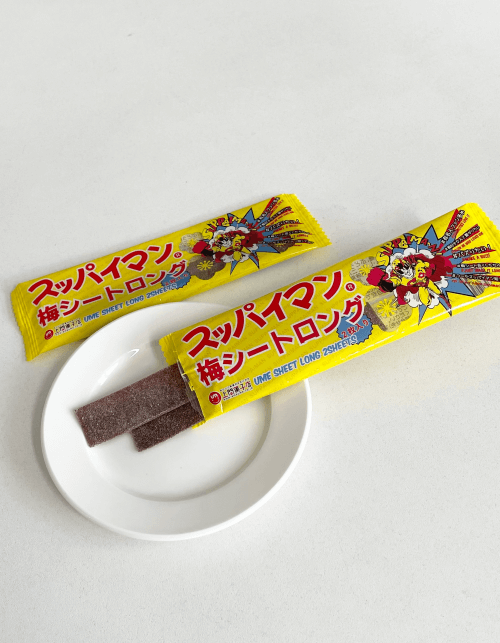 スッパイマンの甘酸っぱい梅味をシートに練り込み、片手でも食べやすい大きさにしました!